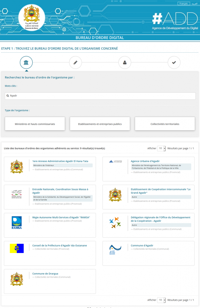 Maroc - Bureau d'ordre digital, plateforme permettant aux administrations et organismes publics de gérer électroniquement les flux des courriers entrants et sortants. Voyez ce qui est possible actuellement sur Agadir et la région.